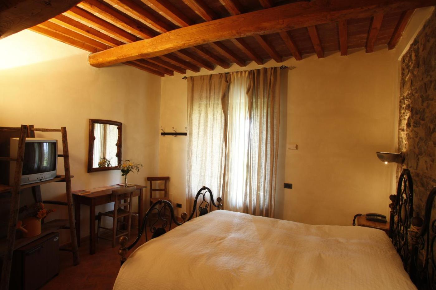 Double Room. Country-style room with a garden patio and wood-beamed ceilings. Features air conditioning, satellite TV, and wooden or terracotta floors. Some rooms have wrought iron beds.
