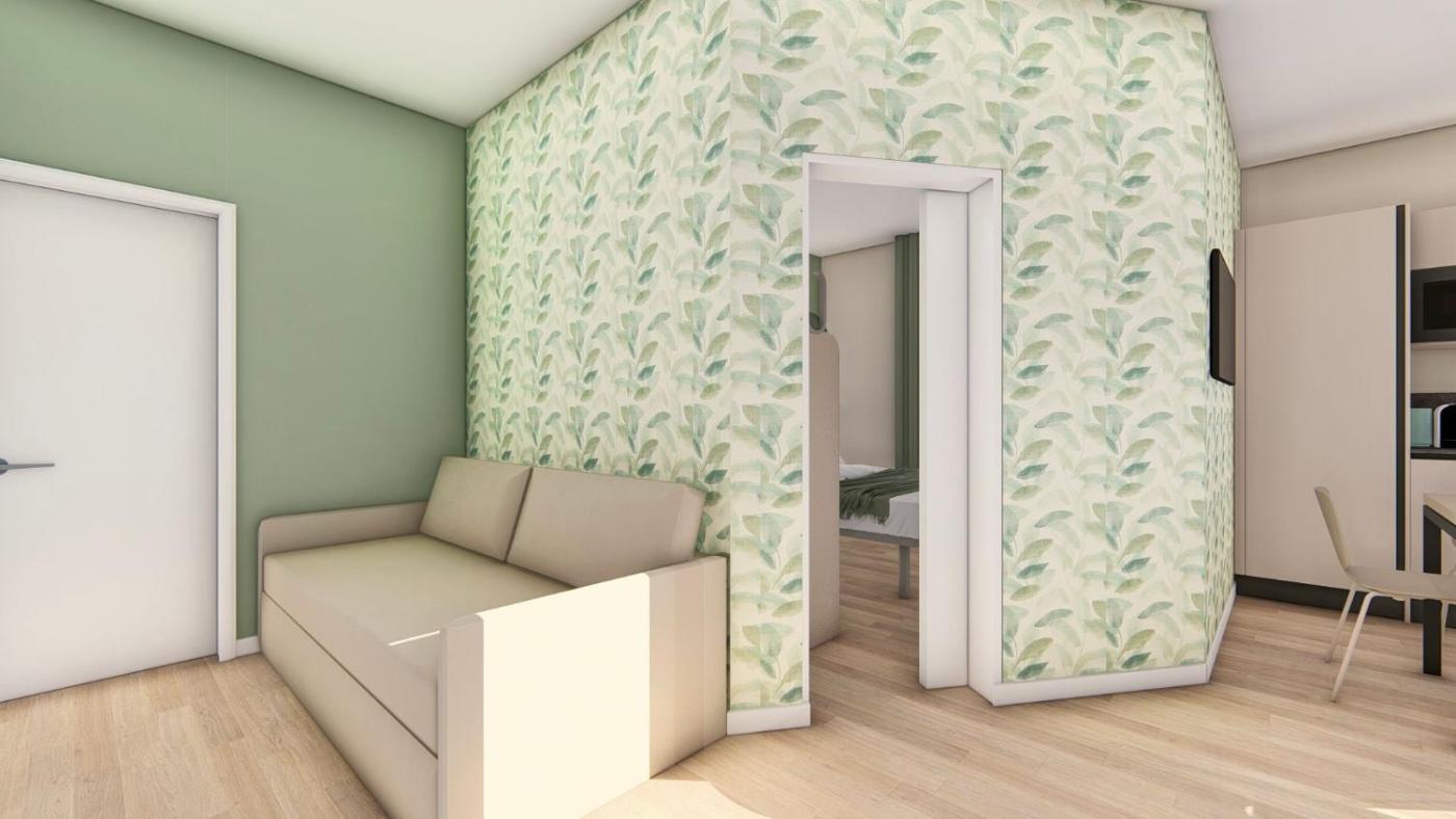 One-Bedroom Family Apartment. This air-conditioned apartment includes 1 living room, 1 separate bedroom and 1 bathroom with a shower. Guests can make meals in the fully equipped kitchen that has a stovetop, a refrigerator and kitchenware. Boasting a terrace with a quiet street view, this apartment also offers a dining area and a flat-screen TV with cable channels. The unit has 3 beds. ;